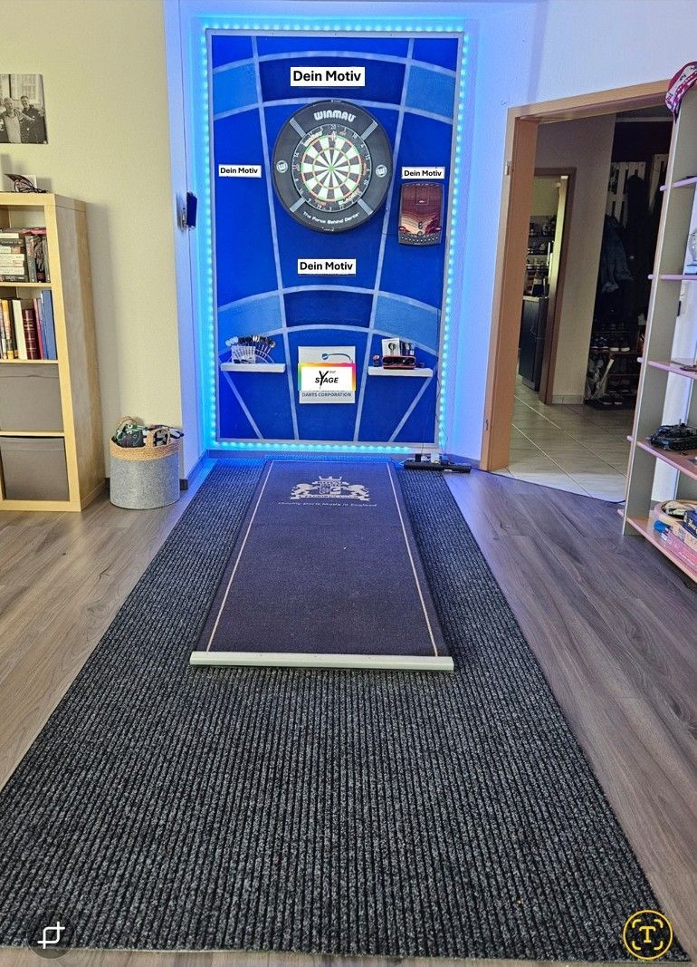 Wanddeko (ohne Logo) inkl. Alurahmen mit indirekter LED- Beleuchtung und 2x Regal zur Ablage der Darts.